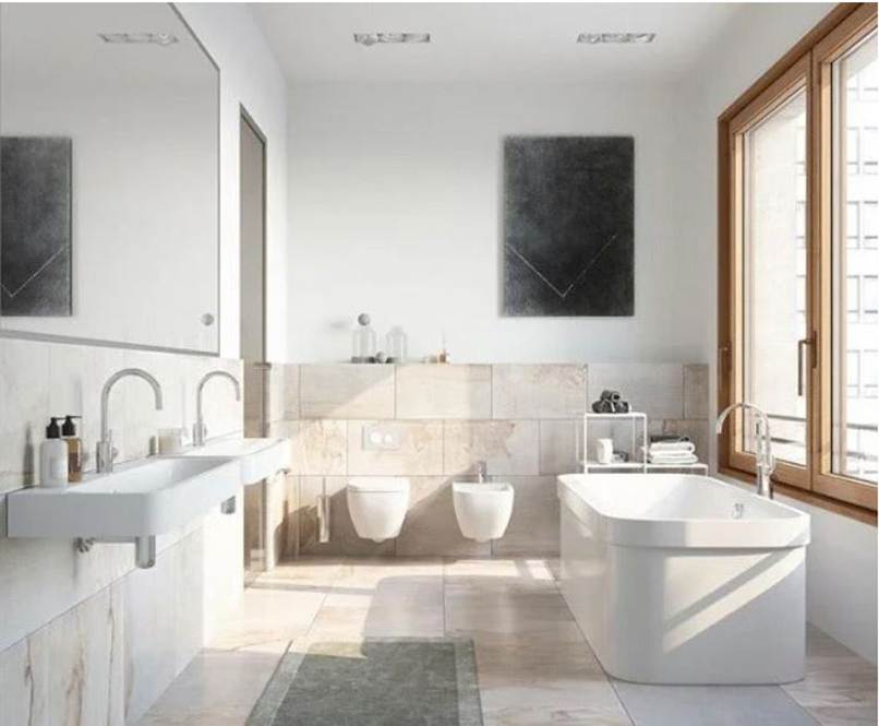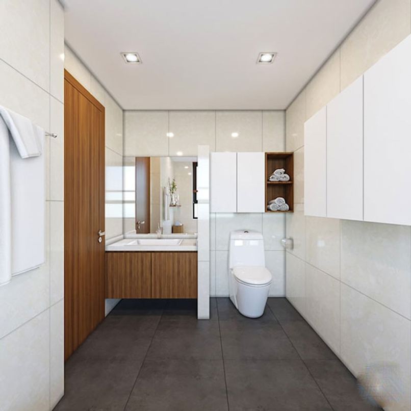 Thứ ba, sử dụng gạch lát kích thước lớn, sáng màu. Lựa chọn gạch lát sàn sáng màu và có kích thước lớn trong thiết kế phòng tắm 4m2. Sẽ tạo ra cảm giác rộng mở, nhìn như phòng tắm rộng và lớn hơn.