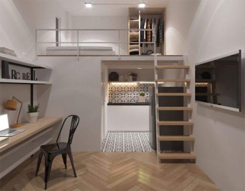 Thứ nhất, thiết kế phòng trọ 15m2 có gác lửng, gác xép. Gác lửng là lựa chọn hoàn hảo cho những căn phòng có diện tích nhỏ hẹp nhằm tăng thêm không gian sử dụng theo chiều cao. Đa phần gác lửng đều là nơi nghỉ ngơi giúp phòng ngủ có thêm không gian sinh hoạt. Nếu thiết kế khéo léo thì với diện tích 15m2 hoàn toàn có thể đảm bảo nhu cầu sống và sinh hoạt của 2-3 người.