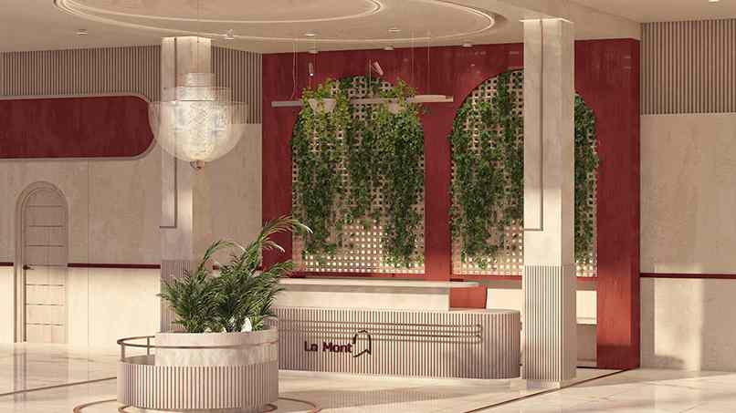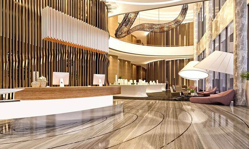 - Thiết kế quầy lễ tân khách sạn đảm bảo sự hài hòa với chi tiết nội thất, trang trí trong tổng thể.