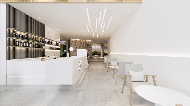 - Thiết kế quầy lễ tân khách sạn hình cung mềm mại