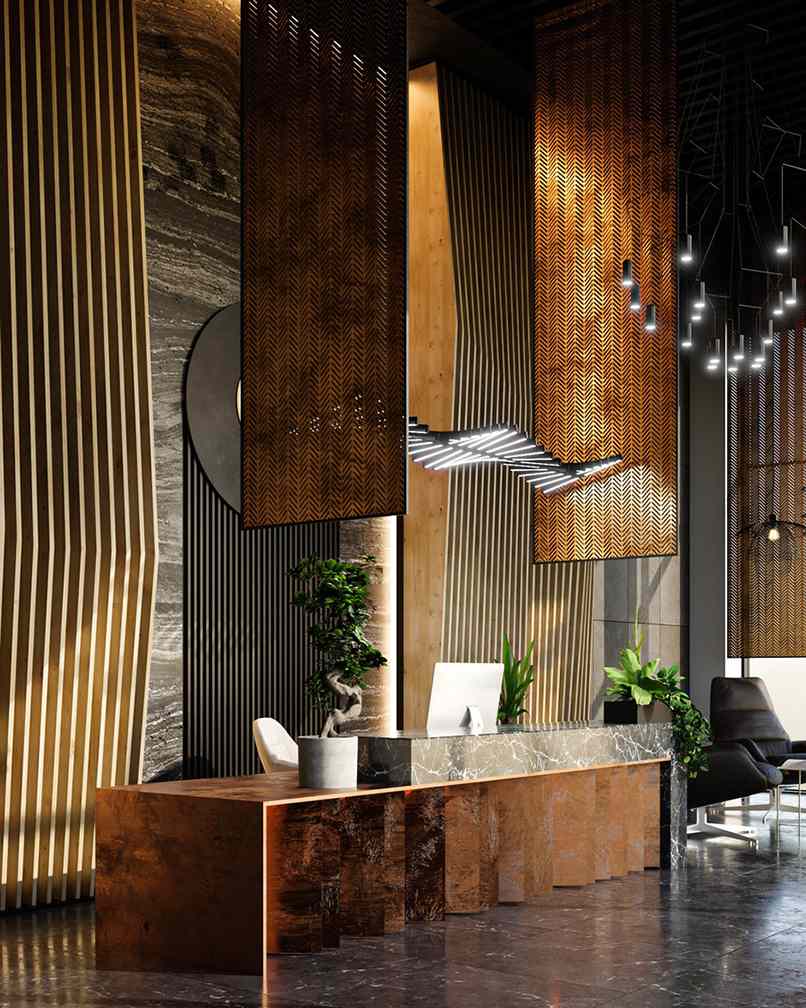 6. Ý tưởng thiết kế quầy lễ tân khách sạn sang trọng