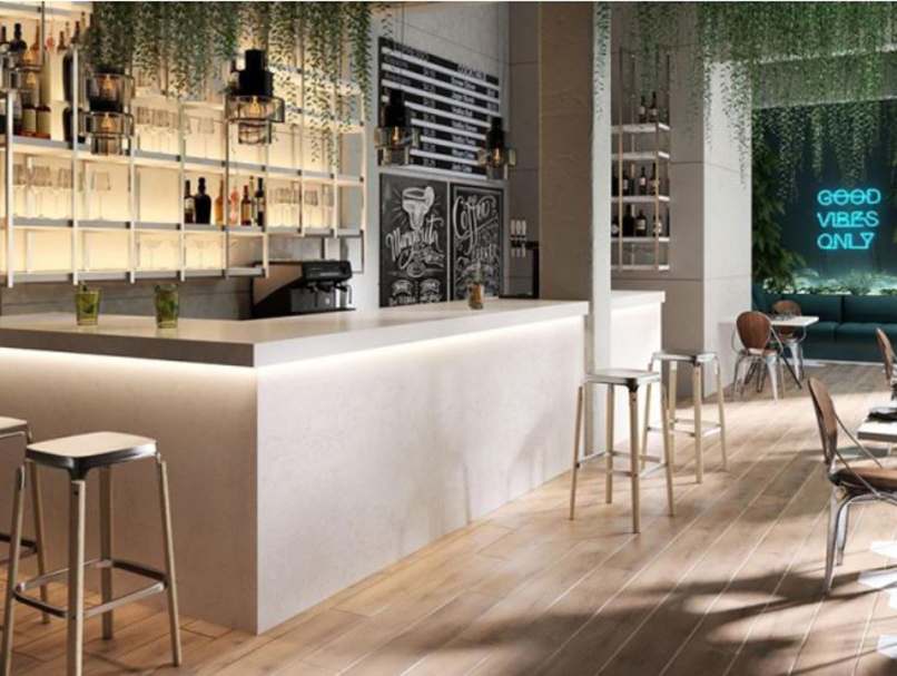 Khu vực quầy pha chế là nơi làm việc của các nhân viên. Vì vậy, bạn không nên thiết kế các quầy pha chế chật hẹp gây khó khăn cho việc di chuyển. Chiều rộng cửa sàn khoảng 120cm- 150cm. Với diện tích này, nhân viên sẽ dễ dàng hơn trong việc di chuyển và dọn dẹp vệ sinh tốt hơn.