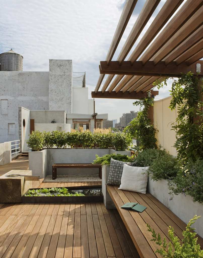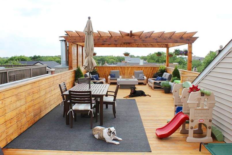 Bố trí đồ nội thất phù hợp với không gian sẽ khiến mọi thứ trở nên dễ chịu hơn và hài hòa hơn. Với sân thượng đẹp thì nội thất được ưu tiên hàng đầu là sàn gỗ vì sự tinh tế, nhỏ gọn và thanh lịch.