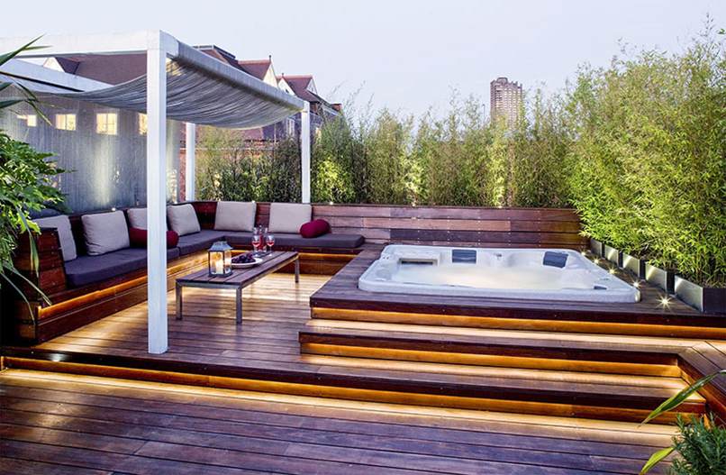 Tăng ánh sáng cho sân thượng để buổi đêm bạn có thể dễ dàng tăng thêm sự lãng mạn, dễ dàng hoạt động.
