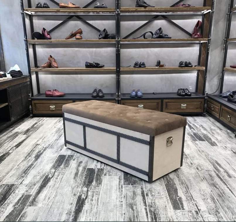 Khu vực chỗ ngồi cho khách hàng là nơi không thể thiếu đối với việc thiết kế shop giày nhỏ. Gia chủ cần chú ý đến kích thước cũng như chất liệu của khu vực này.