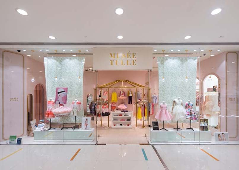 2.1 Trang trí thiết kế shop quần áo trẻ em đơn giản với màu sắc nhất quán