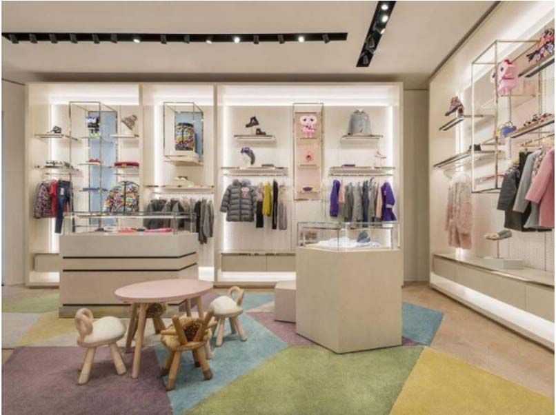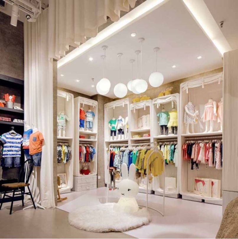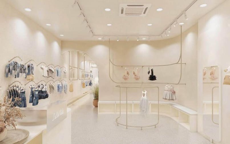 2.5 Thiết kế shop quần áo trẻ em đơn giản với hệ thống đèn chiếu sáng
