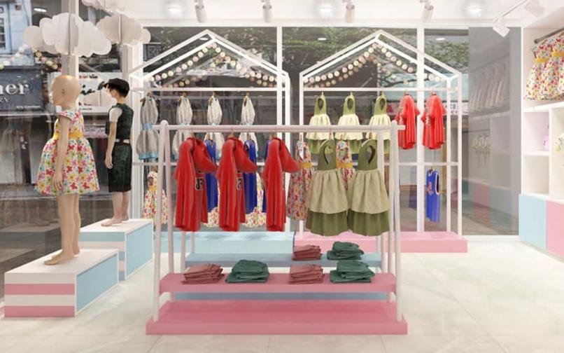Thiết kế shop quần áo trẻ em đơn giản