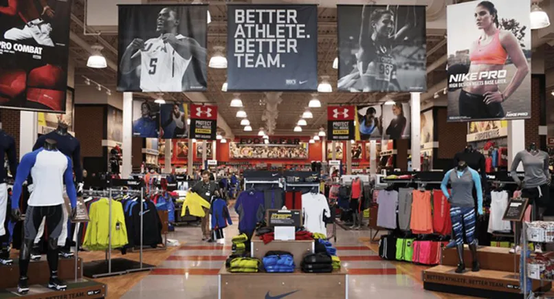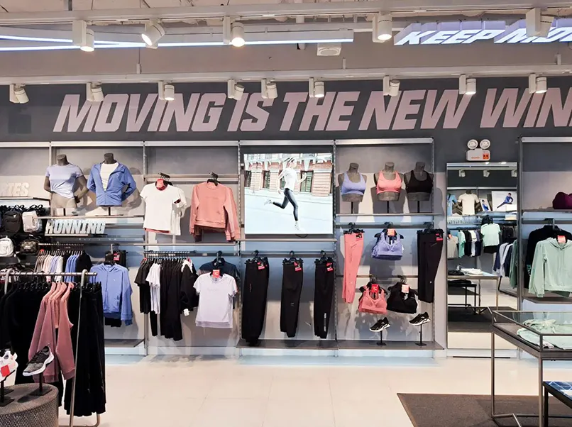 Hầu hết các cửa hàng thể thao đều hướng đến phong cách năng động, hiện đại. Các gam màu chủ yếu được sử dụng trong lĩnh vực này có thể kể đến như: đỏ, đen, vàng, cam, xanh dương, trắng,…