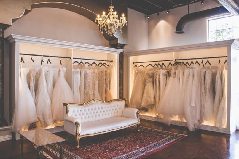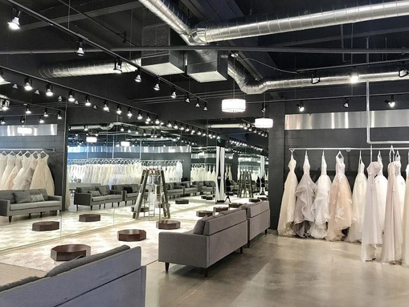 Kiểu phổ biến khi trang trí tiệm áo cưới thường là dạng đèn chùm có thiết kế tinh tế, mềm mại ở trung tâm. Bên cạnh đó, bạn cũng có thể chọn Led âm tường vì chúng có độ sáng cao nhưng rất tiết kiệm. Ở khu vực thay đồ của cô dâu thì nên có vài chiếc đèn nhỏ.