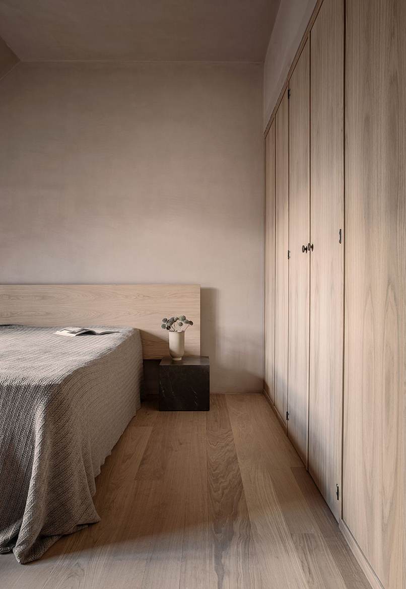 Những chiếc tủ âm tường lớn trải dài trên mảng tường sẽ rất hữu dụng cho ngôi nhà nhỏ vì nó sẽ chứa được nhiều đồ và có thể kết nối các không gian của các phòng. Ngoài ra, tủ âm tường thường được kéo dài chiều cao lên trần nhà tạo sự liền mạch cho không gian.