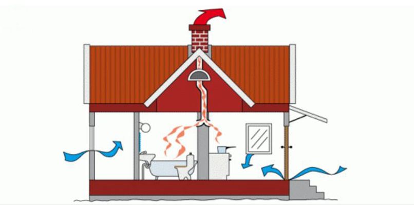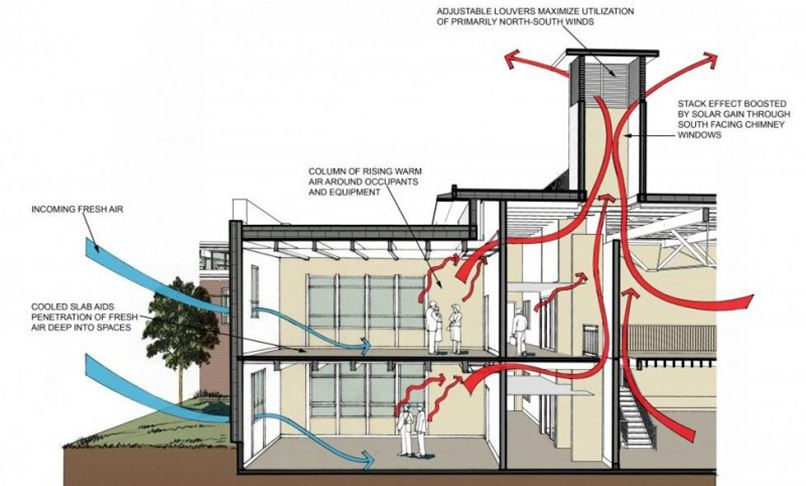 Các phần tử không không khí nóng và khô nhẹ hơn nên thường bốc lên cao, phần từ khí lạnh, ẩm sẽ chìm xuống dưới. Bởi vật chỉ cần mở đúng vị trí thì không khí lạnh sẽ đi vào và đẩy khí nóng lên tầng cao nhất rồi thoát ra ngoài.