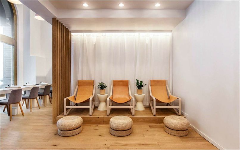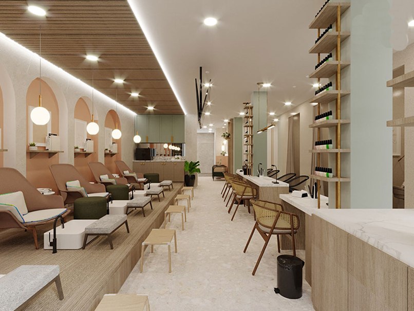 Thiết kế tiệm nail phong cách Hàn Quốc cũng đòi hỏi sự phản khoa học và ấn tượng. Nó vừa phải mang nét thẩm mỹ hiện đại, thiết kế tiệm nail này có thể tạo cảm giác gần gũi, hoà hợp với thiên nhiên, bảo vệ môi trường thông qua chất liệu tự nhiên. Quầy thanh toán, tủ kệ và sàn nhà đều được thiết kế bằng gỗ tự nhiên sẽ mang đến vẻ đẹp hài hoà, thống nhất và kết nối cho tiệm nail.
