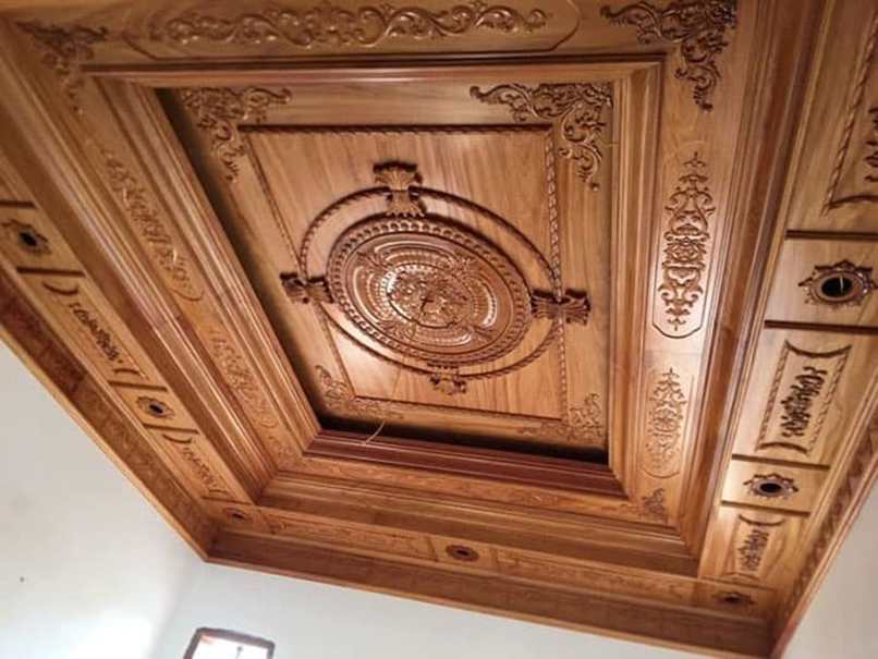 Trần gỗ tân cổ điển được áp dụng trong thiết kế nhà ở khá nhiều, nhất là đối với những ngôi nhà theo phong cách cổ điển. Nhiều gia chủ thích chất liệu này vì hiệu ứng thẩm mỹ mà nó mang lại. Những loại gỗ được dùng là: Gỗ Gõ Đỏ, hỗ Hương, Gỗ Pơ mu…