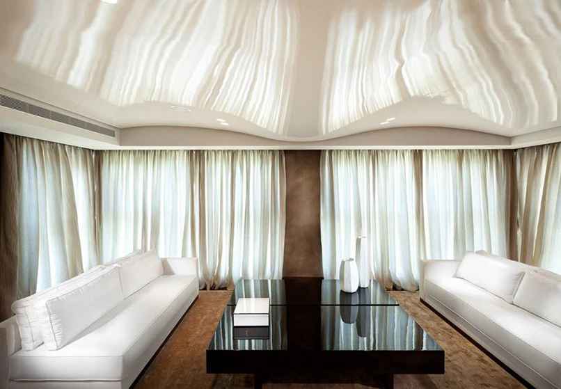 Nhưng không đáng để tự mình làm điều đó, bởi vì để cắt các tấm kính một cách chất lượng và không bị trầy xước, bạn phải có các thiết bị đặc biệt. Hơn nữa, làm Trần gương chồng lên nhau bằng cách gắn tường thạch cao hoặc ván ép vào chúng. Chỉ bằng cách này, gạch bóng kiếng mới có thể bộc lộ hết những phẩm chất tốt nhất của mình.