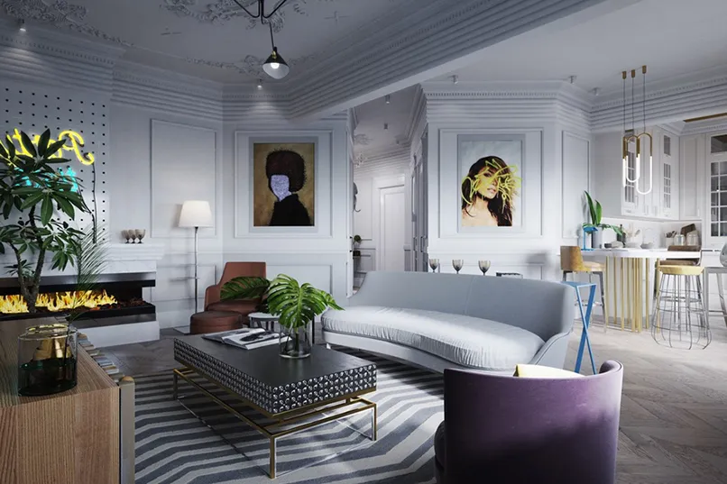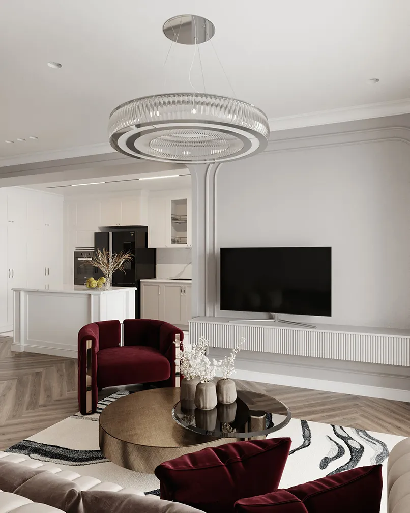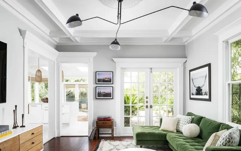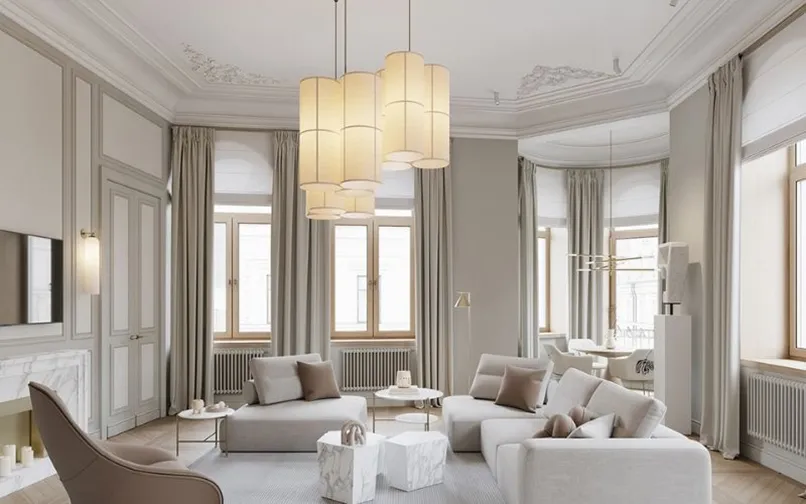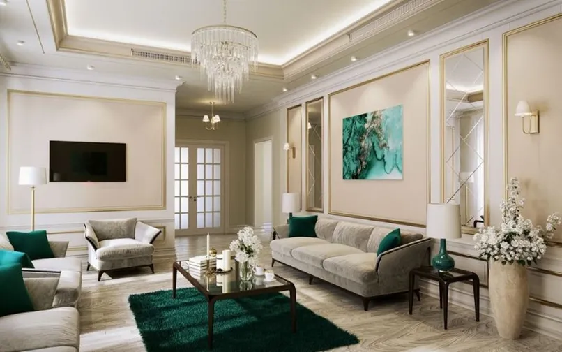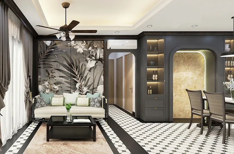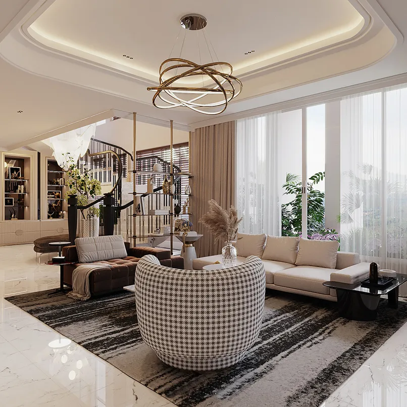 Đầu tiên, mẫu trần thạch cao giật cấp đơn giản phải có tính kết nối các khu vực của không gian lại với nhau. Cụ thể, nếu bạn thống nhất phong cách thiết kế cho phòng khách là cổ điển, nội thất cổ điển thì trần nhà thạch cao giật cấp cũng phải có hoạ tiết cổ điển.