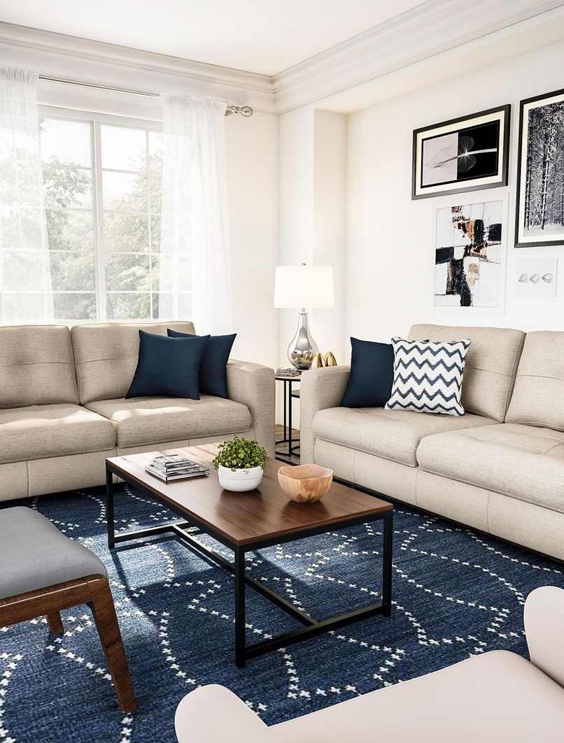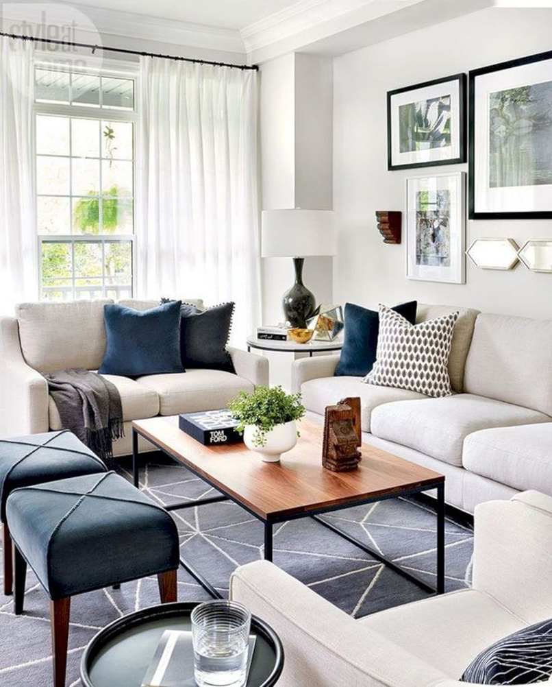 Bạn có thể chơi vơi với sự sắp xếp để tạo ra một hình ảnh mới bất cứ khi nào bạn muốn. Một chiếc bàn cà phê bằng gỗ đặt trên tấm thảm có hoa văn hình học ở trung tâm của căn phòng, với số lượng chỗ ngồi bạn muốn. Một chiếc ghế dài có lưng tựa thấp, một chiếc ghế dài và đệm rải rác được đặt khéo léo sẽ rất trang nhã. Đặt một vài chậu cây xanh trong các chậu thú vị bên cạnh các bức tường.
