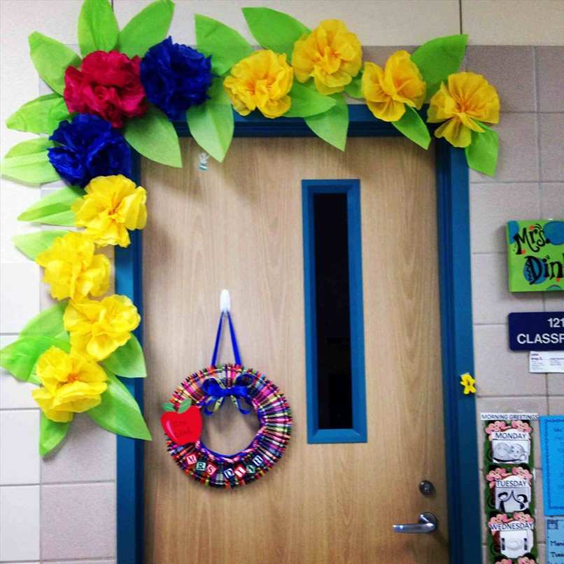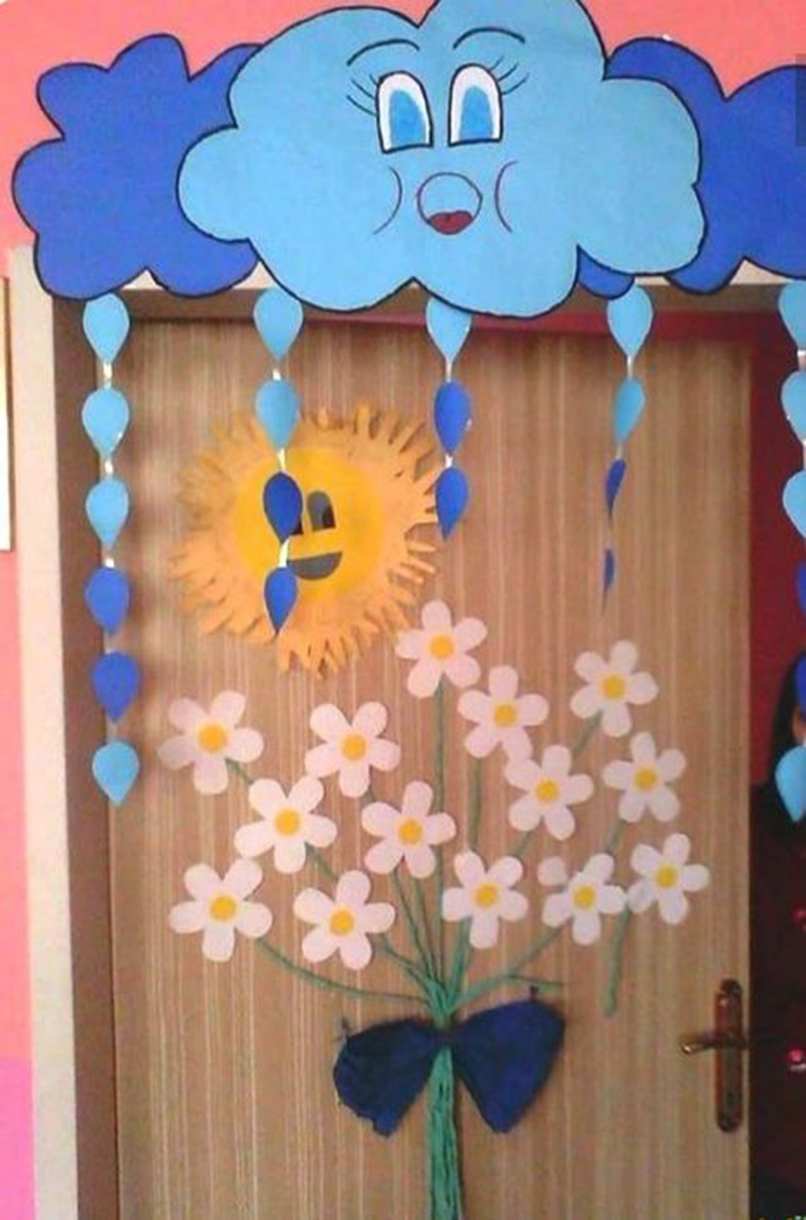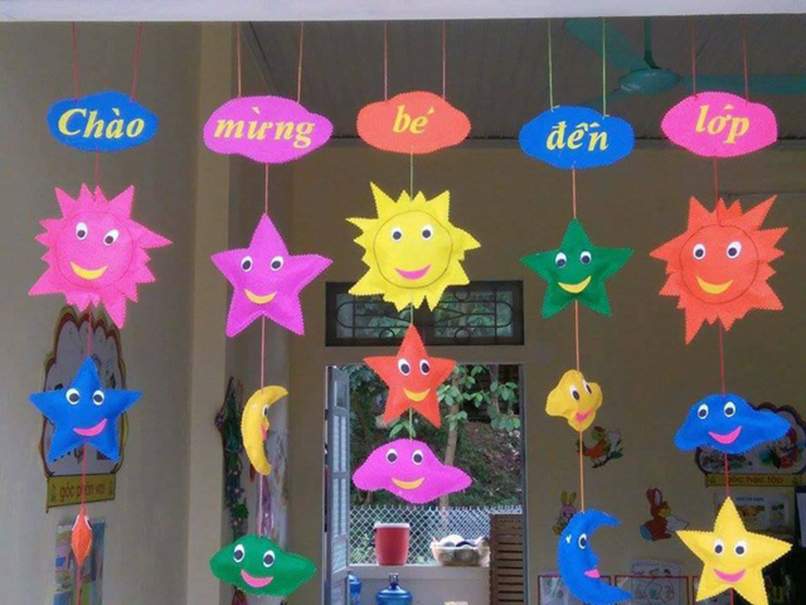 Thứ ba, để các con cùng tham gia trang trí cửa chính lớp mầm non. Các con sẽ vô cùng thích những không gian tự tay mình thực hiện. Cũng chính những hoạt động này sẽ giúp các con thích đến trường hơn.