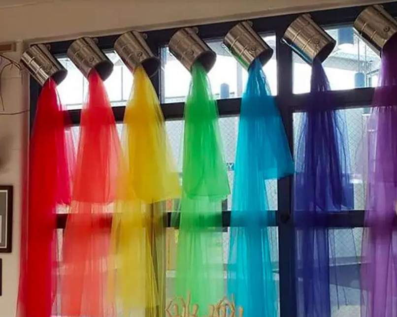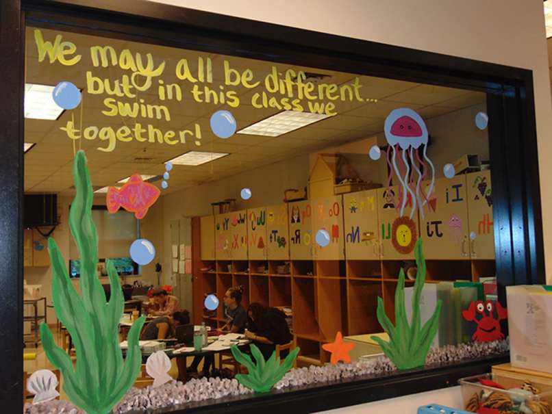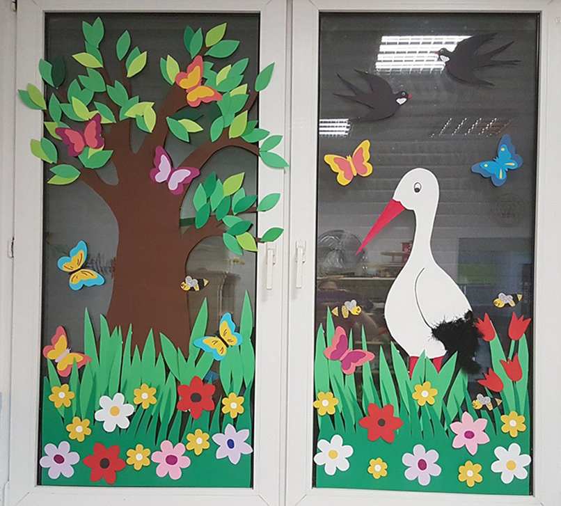 Thứ tư, chọn phong cách trang trí cửa phù hợp với không khí tổng thể. Đừng để khu vực cửa sổ, cửa chính bị lạc lõng giữa không gian tổng thể nhé. Các chi tiết, phụ kiện gắn trên cửa có thể được sử dụng để trang trí tường cũng như góc lớp.