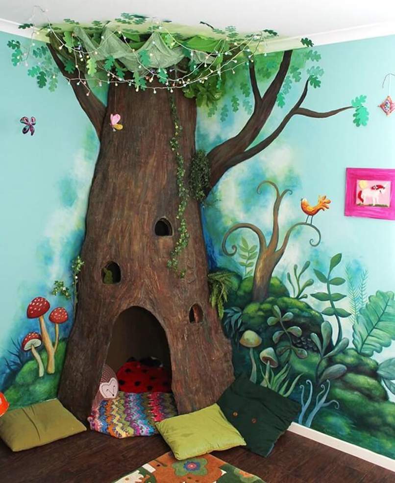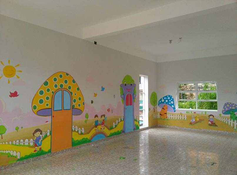 Bạn cũng có thể sử dụng các hình vẽ sáng tạp hơn nhưng vẫn tinh tế, bắt mắt và phù hợp với độ tuổi của trẻ sinh hoạt trong không gian.