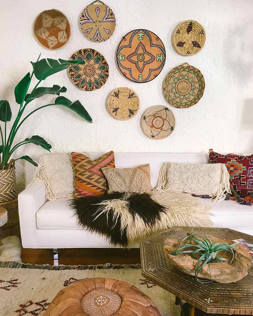 Ngay cả khi những chiếc đĩa mây cũng hoàn hảo cho một phòng trưng bày. Thậm chí còn tuyệt hơn nếu được đặt trong bối cảnh mộc mạc, dân tộc hoặc nhiệt đới. Chúng tạo thêm chiều sâu và kết cấu cho không gian của bạn, với tông màu tự nhiên ấm áp và các chi tiết dệt tay quyến rũ chắc chắn sẽ không bị chú ý.
