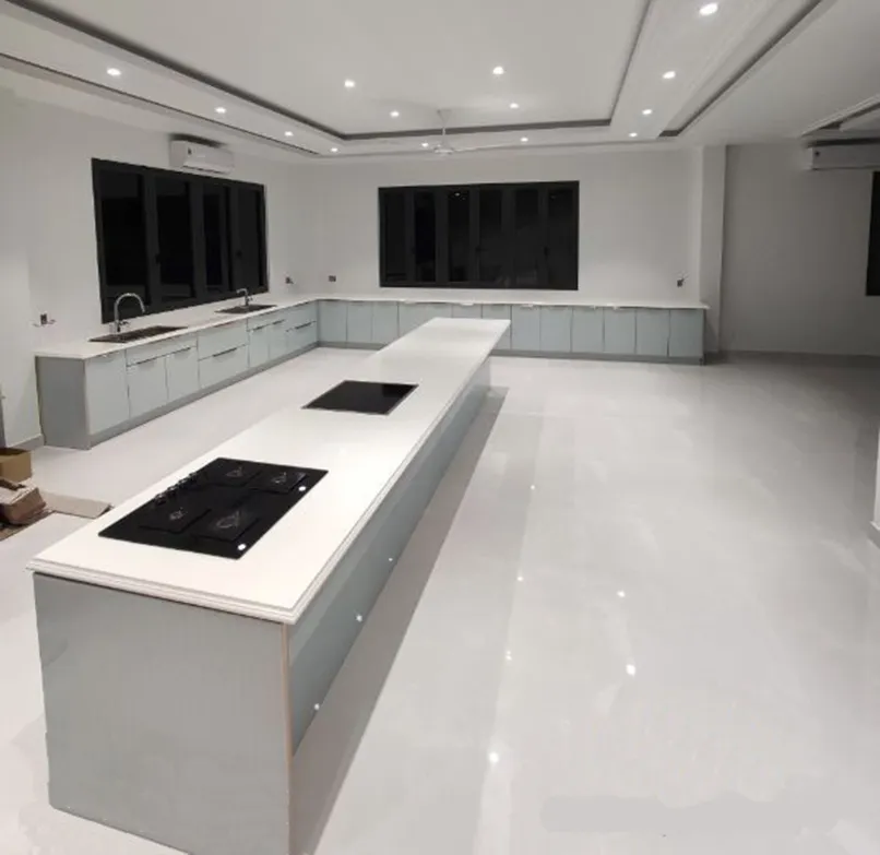 Mặt bàn ốp bếp. Đá ốp bếp có rất nhiều màu sắc và chi tiết bằng hoa văn cho khách hàng dễ dàng lựa chọn. Một số mẫu đá bếp thông dụng như đá đen, đá kim sa,… thường được làm dựa vào nhu cầu, thẩm mỹ của khách hàng.