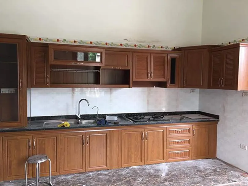 4.1 Tủ bếp nhôm kính giả vân gỗ