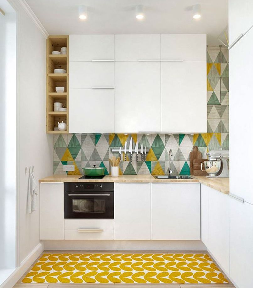 Thứ ba, màu sắc tủ cần đồng nhất với màu sắc của nội thất của không gian. Những căn bếp nhỏ hẹp nên chọn mẫu tủ bếp treo tường màu sắc tươi sáng để tạo nên sự thoáng đãng.