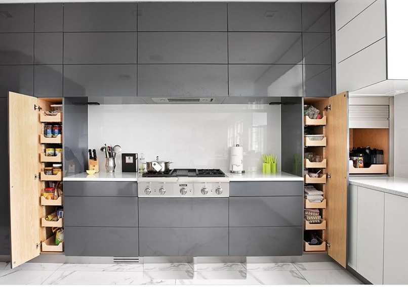 Tủ đựng đồ khô nhà bếp là một trong những đặc điểm lớn mà gia chủ cần lưu ý khi lựa chọn. Hiện nay có hai loại tủ đựng thực phẩm là tủ mở và tủ kéo.