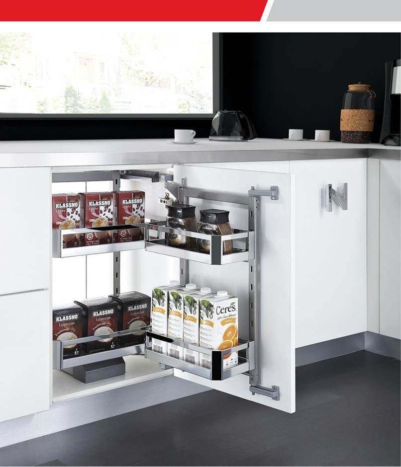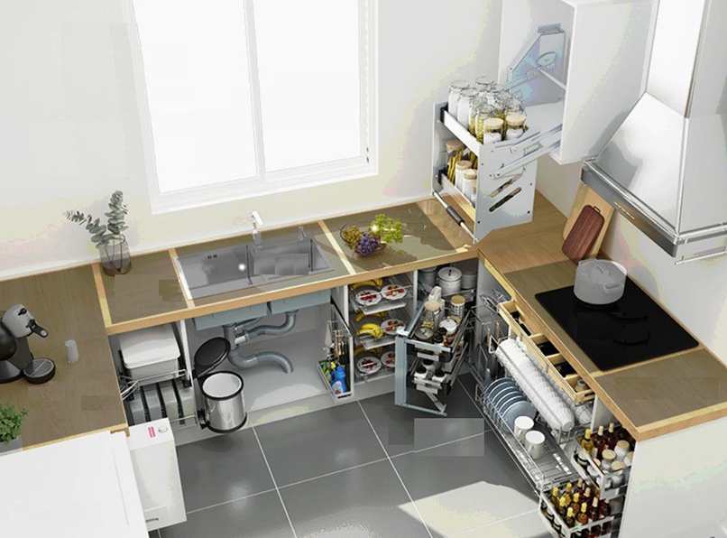 - Giúp người nội trợ dễ dàng thấy và lấy được mọi thứ trong tủ, không gặp khó khăn như khi sử dụng nếu kệ tủ bếp trên quá cao.