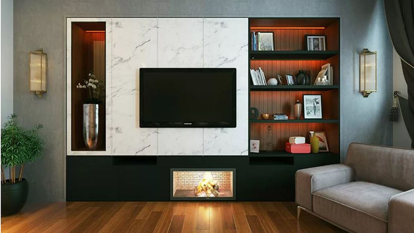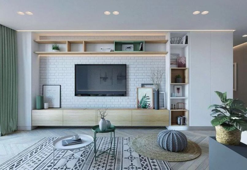 Đây là nơi trưng bày, lưu trữ nhiều vật phẩm khác nhau như: Tivi, sách, rượu, bình hoa, đồ thủ công,… Nên giúp lấp đầy khoảng trống trong không gian. Những chiếc tủ kệ âm tường phòng khách với thiết kế đẹp mắt phát huy tốt công dụng trong việc lấp đầy khoảng trống không gian.