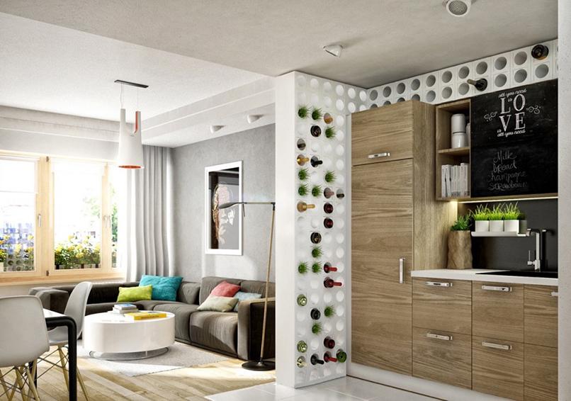 3. Ý tưởng thiết kế tủ rượu ngăn phòng khách và bếp đẹp, độc đáo