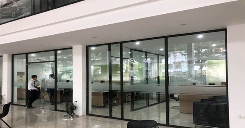 - Vách ngăn bằng kính cường lực