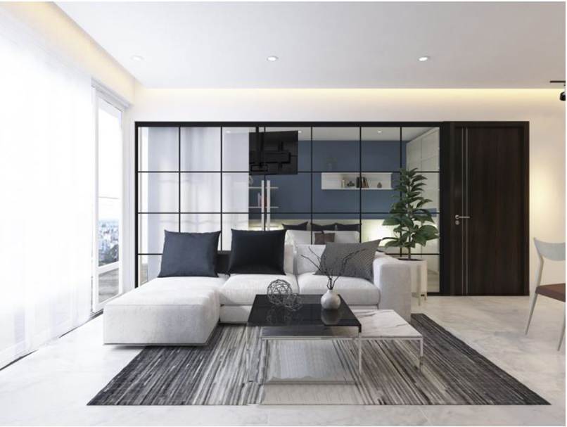 Không quá phô trương, cầu kì, vách ngăn phòng khách bằng kính trong suốt kết hợp với những họa tiết của không gian bên trong sẽ làm bạn ấn tượng với cảnh quan mà nó mang đến.