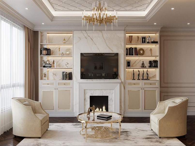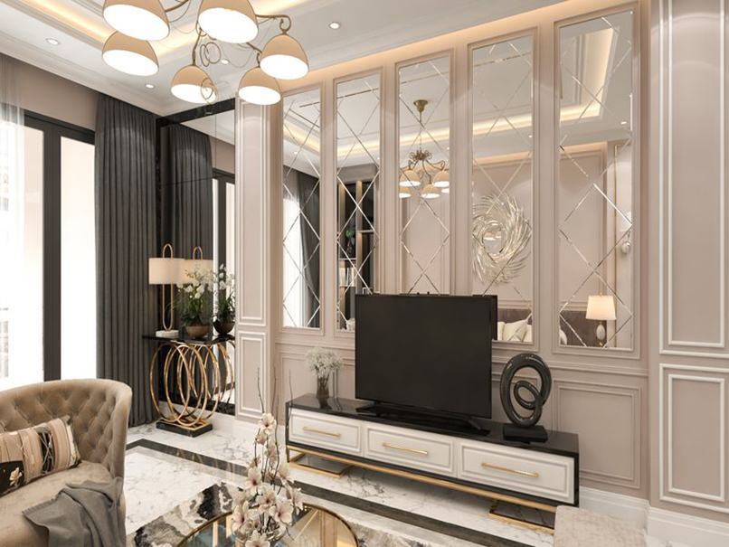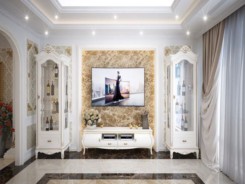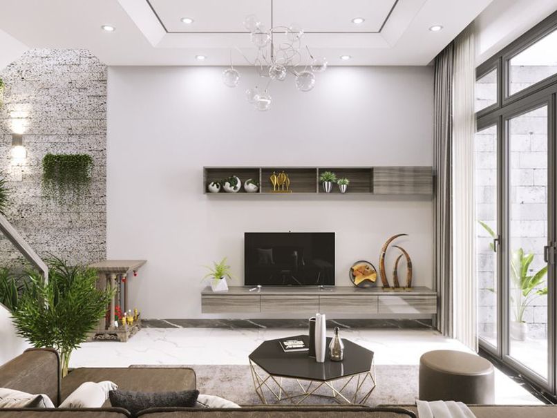 Vách tivi phòng khách hiện đại