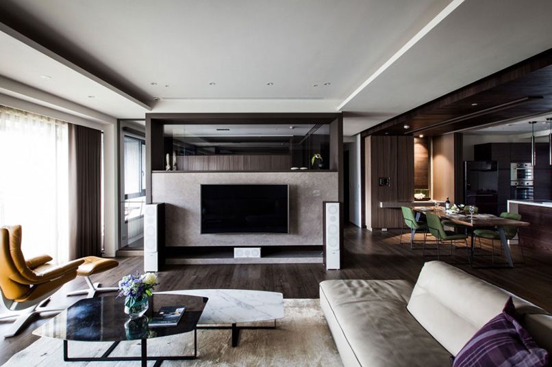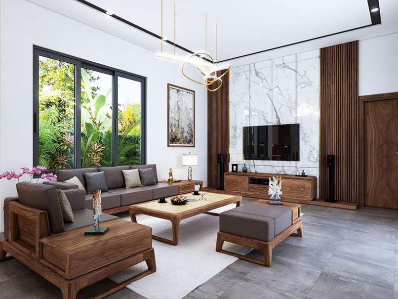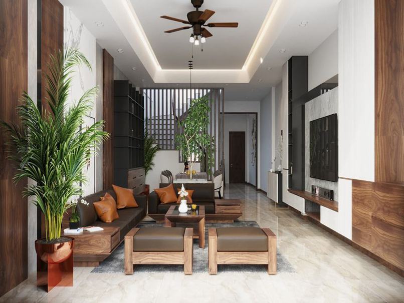 Thứ ba, chú ý đến tông màu chủ đạo khi chọn màu sắc của vách tivi phòng khách hiện đại. Để tạo sự hài hoàn cho không gian, vách ngăn phòng khách thường chọn các gam màu trung tính như nâu gỗ để tạo điểm nhấn sang trọng. Đồng thời cũng chú ý đến cách phối màu của vách ngăn và các món nội thất xung quanh.