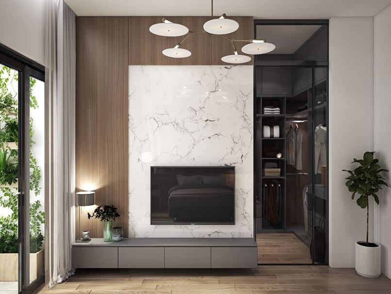Thứ tư, chọn chất liệu phù hợp với kinh phí dự trù. Với sự đa dạng về chất liệu vách tivi phòng khách hiện đại như gỗ công nghiệp, gỗ tự nhiên, nhựa giả đá, nhựa giả gỗ… Nhưng dựa vào ngân sách của gia chủ mà cân nhắc đến chất liệu vì chúng có giá hoàn toàn khác nhau.