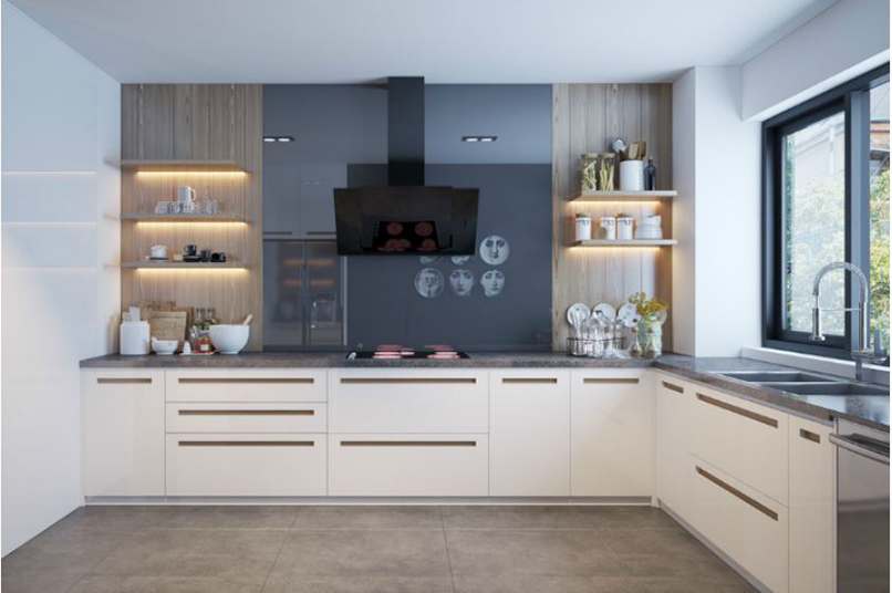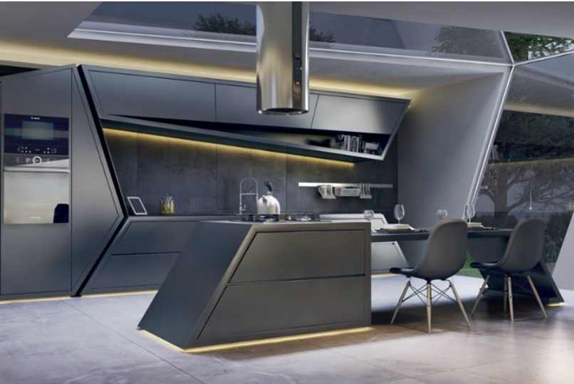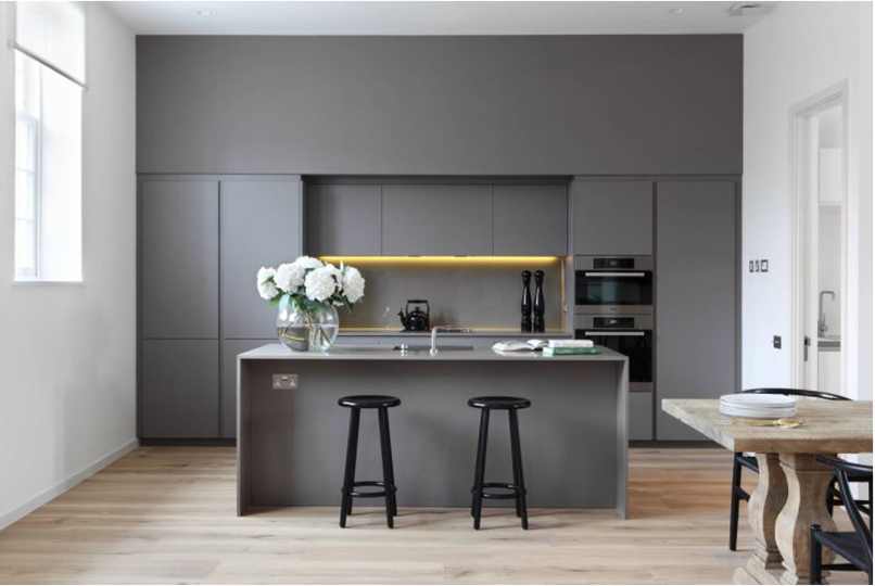 Thứ năm, chiếu sáng từ phía sau phần mặt trước của bếp. Lúc này tủ bếp như một bóng đèn chiếu sáng siêu to. Thường thì vật liệu tủ bếp thường là kính, đá xuyên sáng…