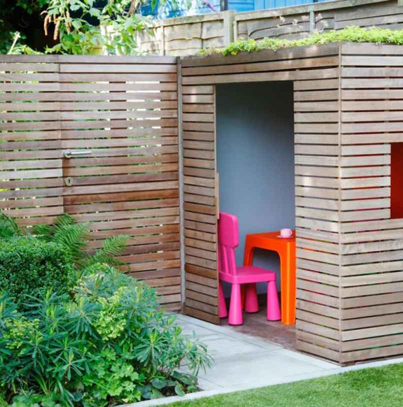 Một chiếc lò sưởi ngộ nghĩnh có thể làm một điểm nhấn kỳ lạ trong khu vườn và cho phép bạn có thể tận hưởng những buổi tối mùa hè. Màu sắc tươi sáng cũng sẽ làm cho khu vườn nhỏ thực sự nổi bật. Đương nhiên, bạn có thể làm điều này bằng cách trồng cây, nhưng có nhiều cách khác nhau. Chẳng hạn như một chiếc bàn, hàng rào, nhà kho…. đầy màu sắc.